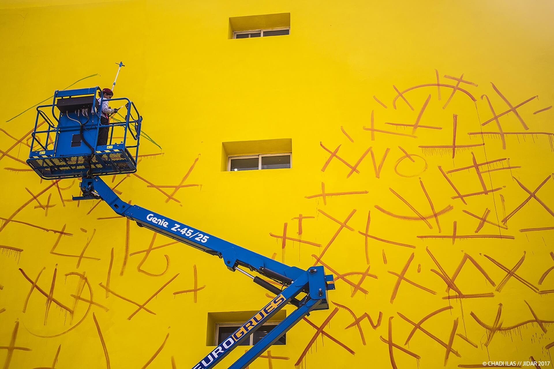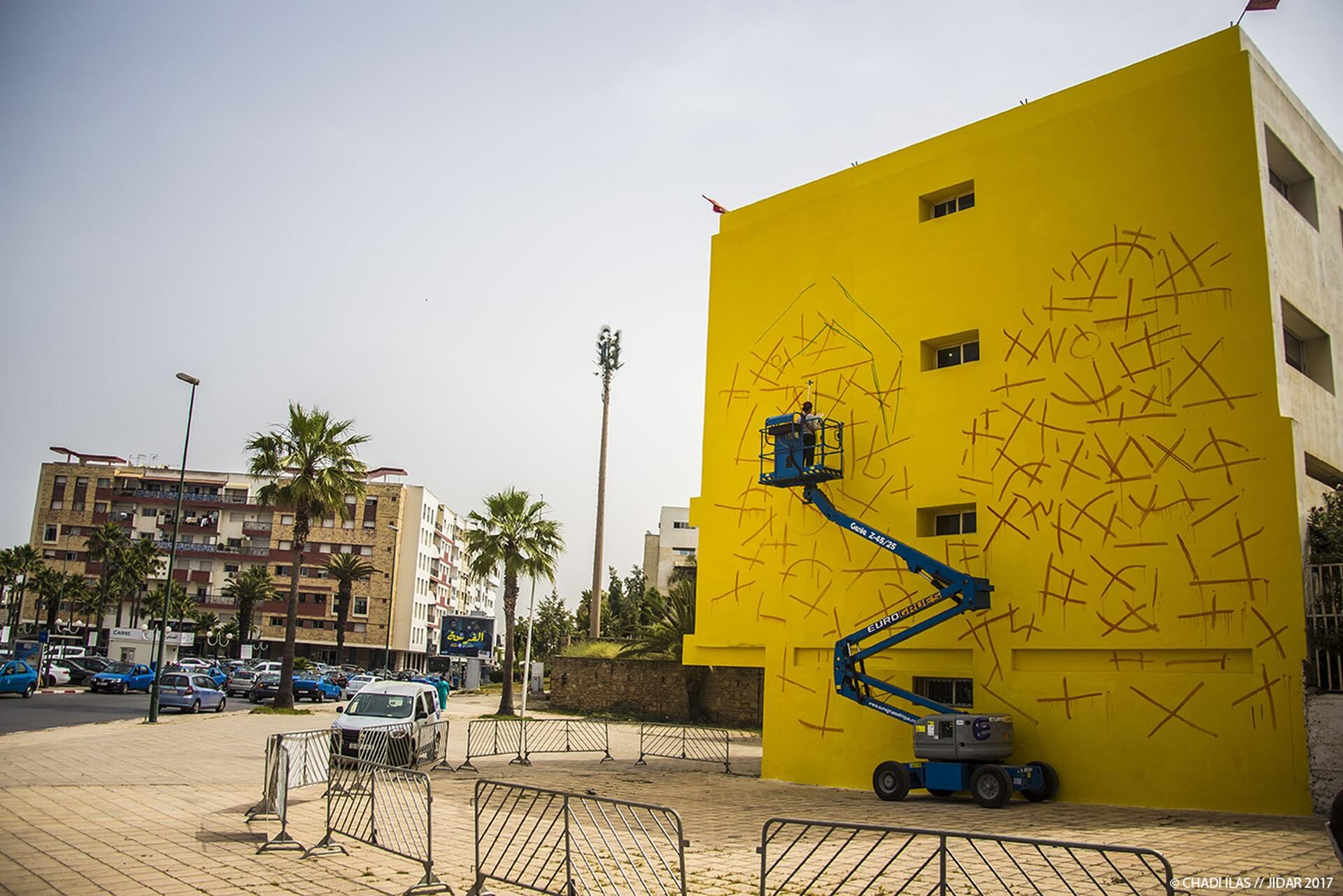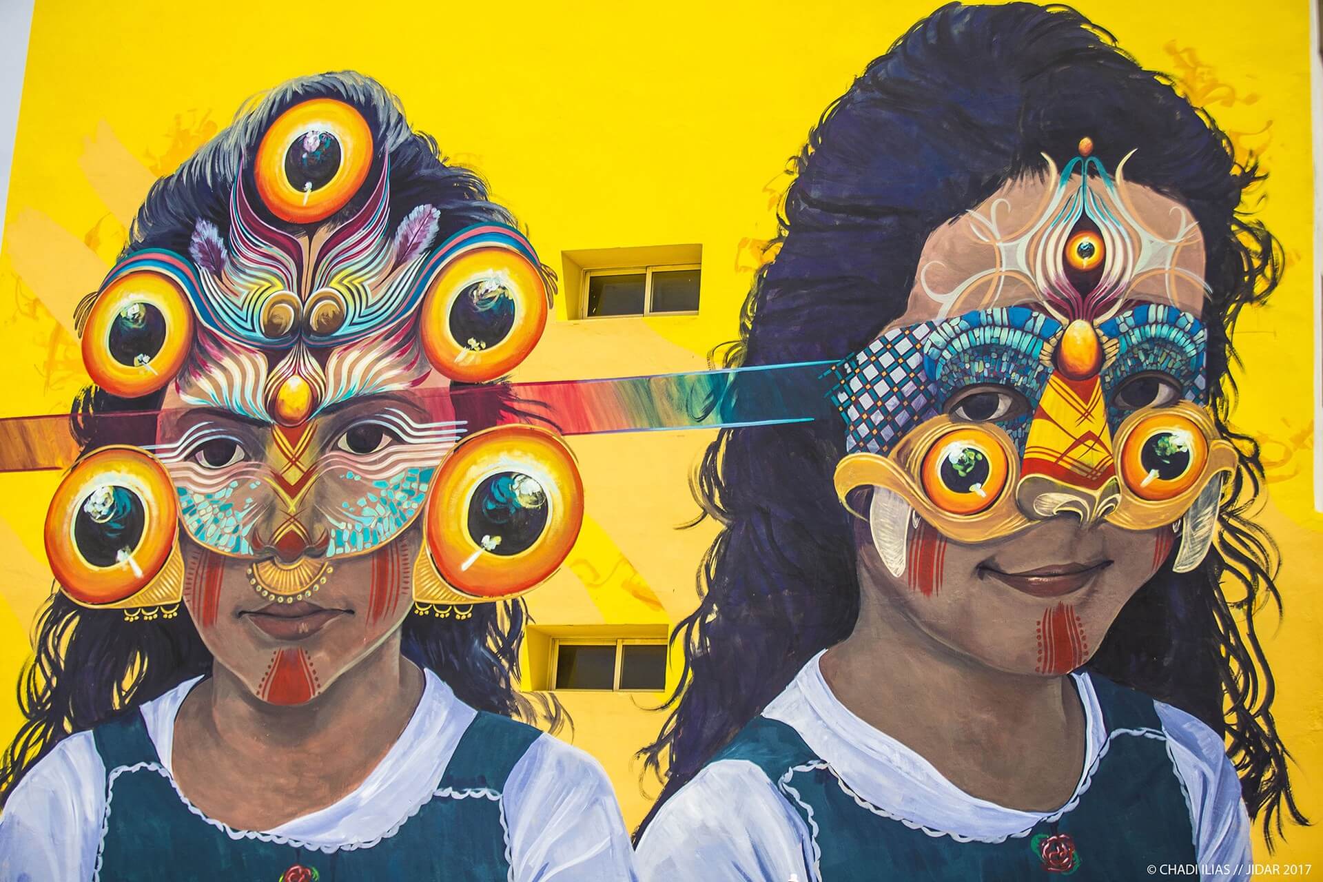 Les oeuvres de GLeo sont une explosion de couleurs, et son nom résonne aujourd’hui comme l’un des plus prometteurs d’Amérique latine. Les fresques gigantesques de cette artiste colombienne, qui est née et qui a grandi à Cali, représentent majoritairement des animaux aux masques bigarrés et des créatures fantastiques, clairement inspirées des cultures et de l‘histoire de son pays, qui semblent provenir d’un monde meilleur. GLeo ne compte plus les expositions et événements street art en Colombie, en Equateur, au Pérou et au Mexique, et s’apprête à mettre en valeur un mur en face de la gare de l’Agdal.