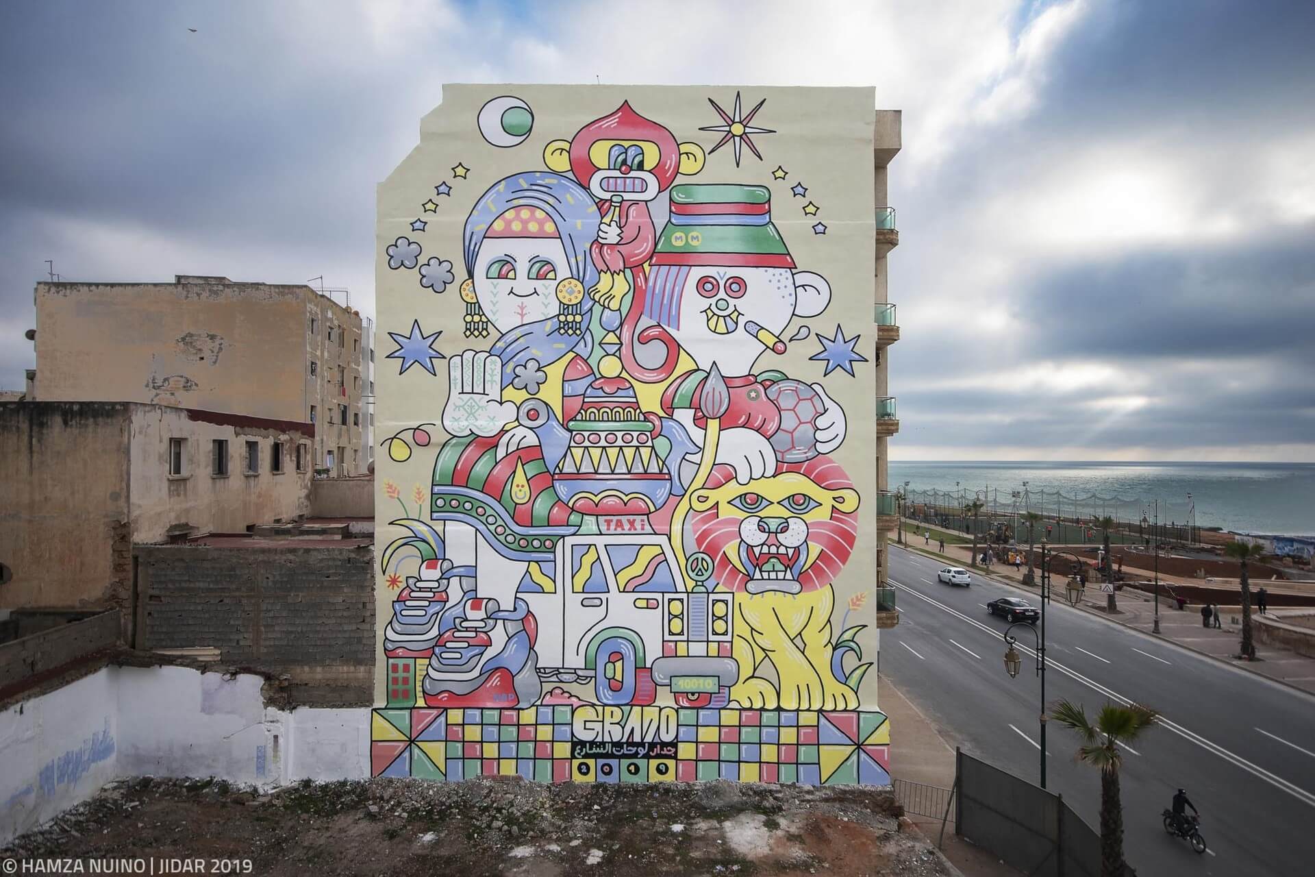 Street artiste espagnol, GR170 a commencé sa carrière en dessinant des poissons aux bouches grandes ouvertes comme s’ils criaient ce qui lui a valu le surnom de Grito, (cri en espagnol). Mixant sprays, marqueurs et rouleaux, il a depuis l’année 2000 affiné sa touche personnelle qui s’inspire de la culture comics, dessins animés, jeux vidéo et punk. Ses fresques se reconnaissent à leur univers enfantin naïf au premier regard mais chargé de détails underground.