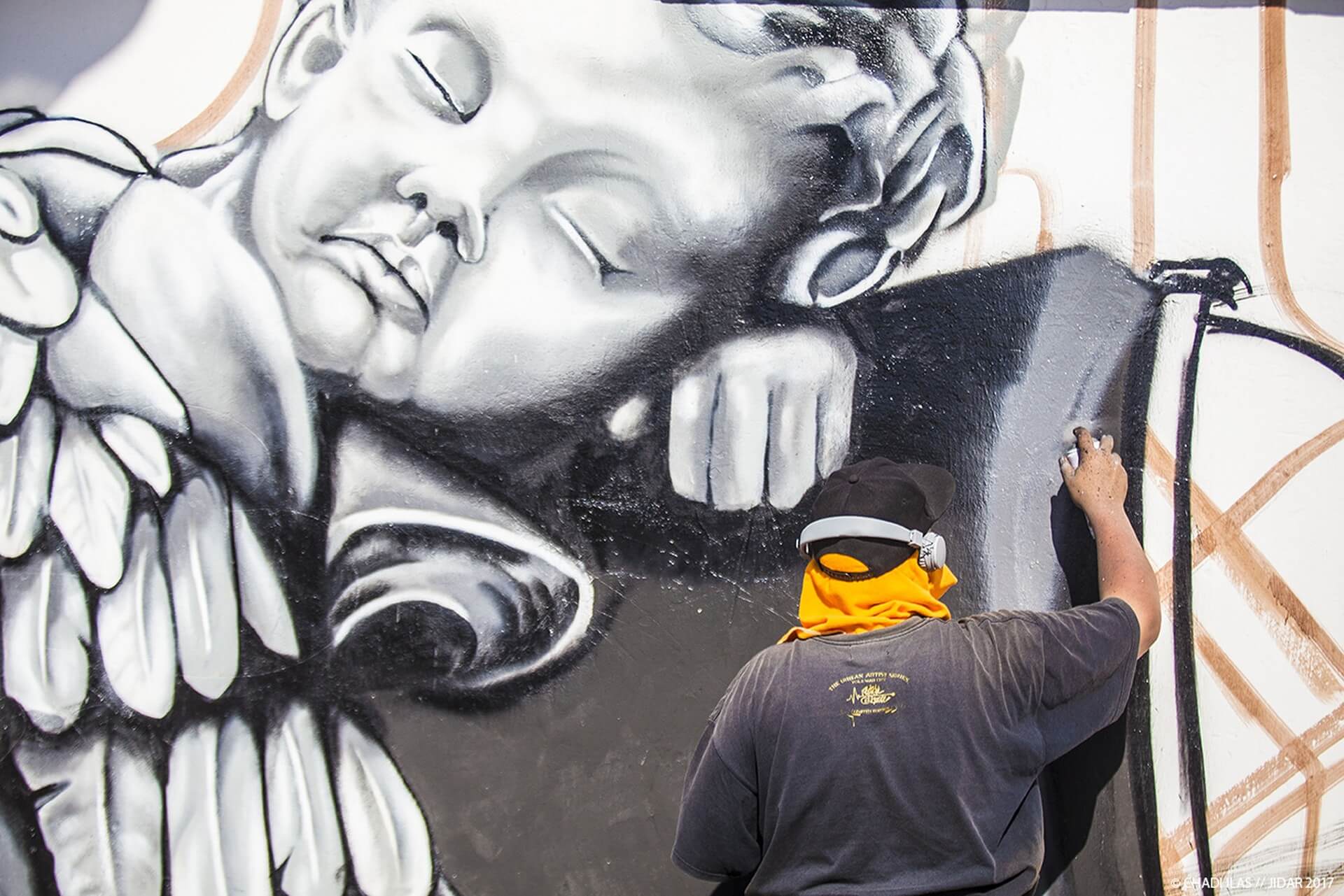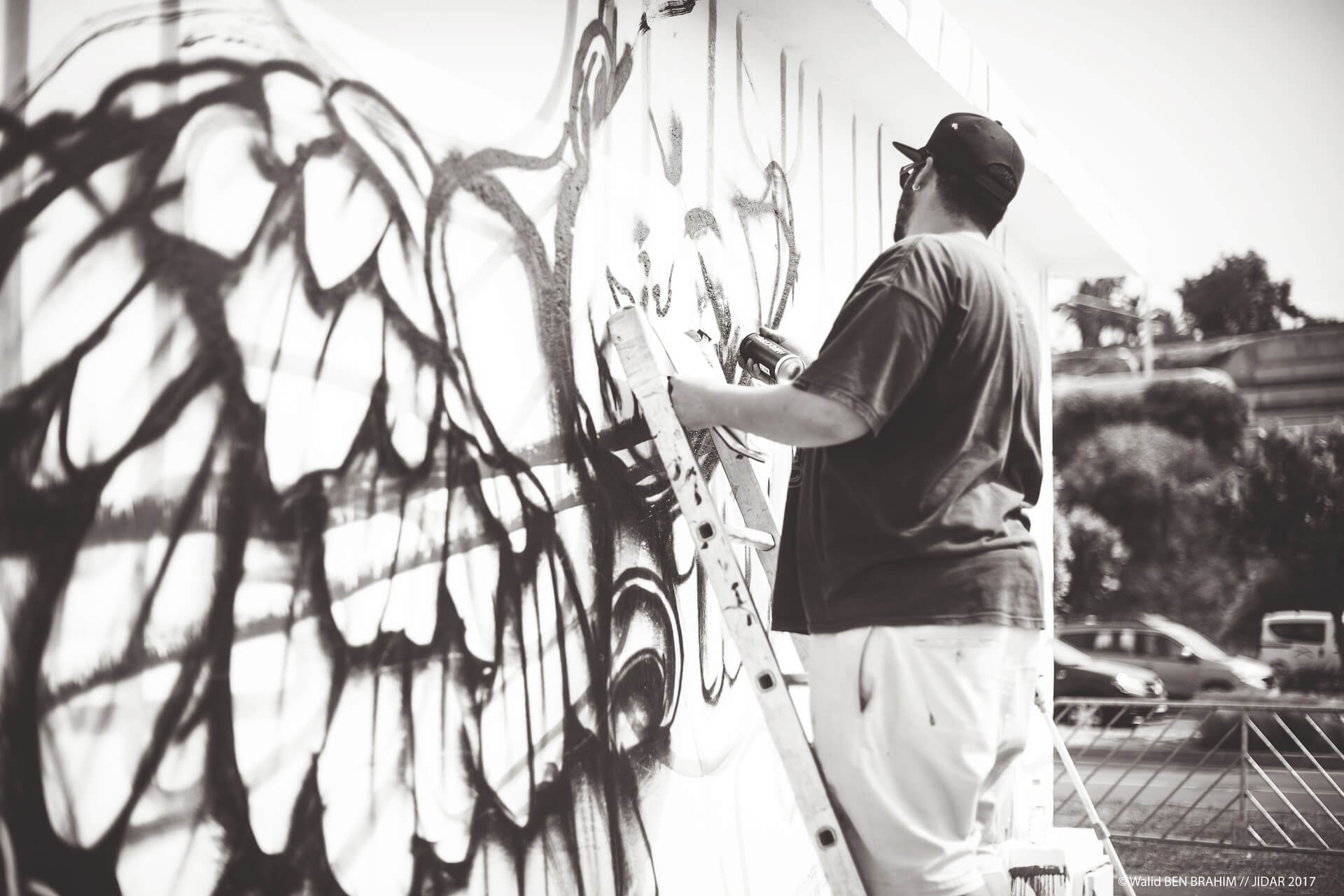 Jeune artiste-peintre et graffeur originaire de Meknès, Mehdi a remporté en 2012 et 2013 les 1e et 2e prix au Festival des Jeunes Artistes dans la catégorie graffiti. Dans son travail, il cherche à briser les barrières entre la galerie et la rue, en intégrant les arts plastiques dans sa pratique du street art. Il participe cette année auprès d’un street artiste égyptien et d’un graffeur marocain à la résidence Graffiti Connexion.