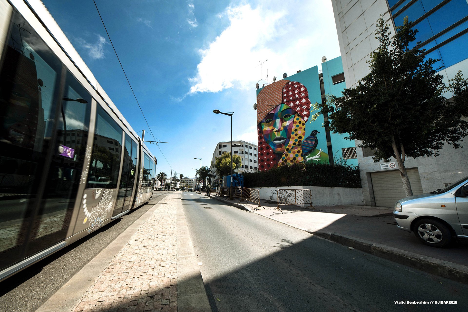 Originaire de Santander, Okuda étudie les Beaux-Arts à Madrid. Il combine formes géométriques multicolores et corps gris anonymes dans un style pop-surréaliste. Ses fresques évoquent des thèmes existentiels et sociaux, et ornent des murs en Europe, aux États-Unis, en Inde, au Japon et en Afrique du Sud.