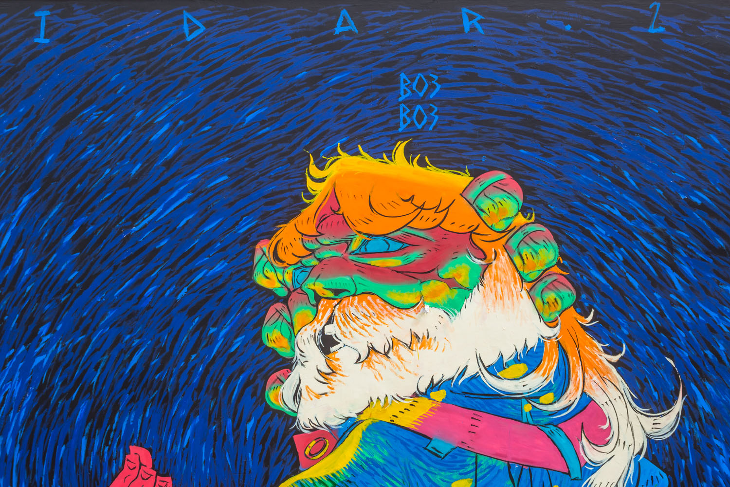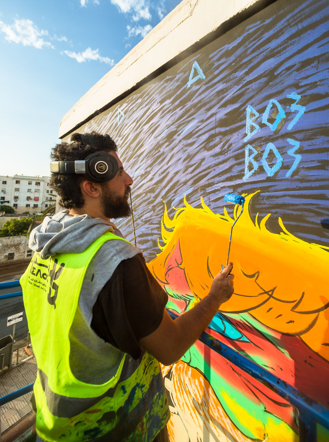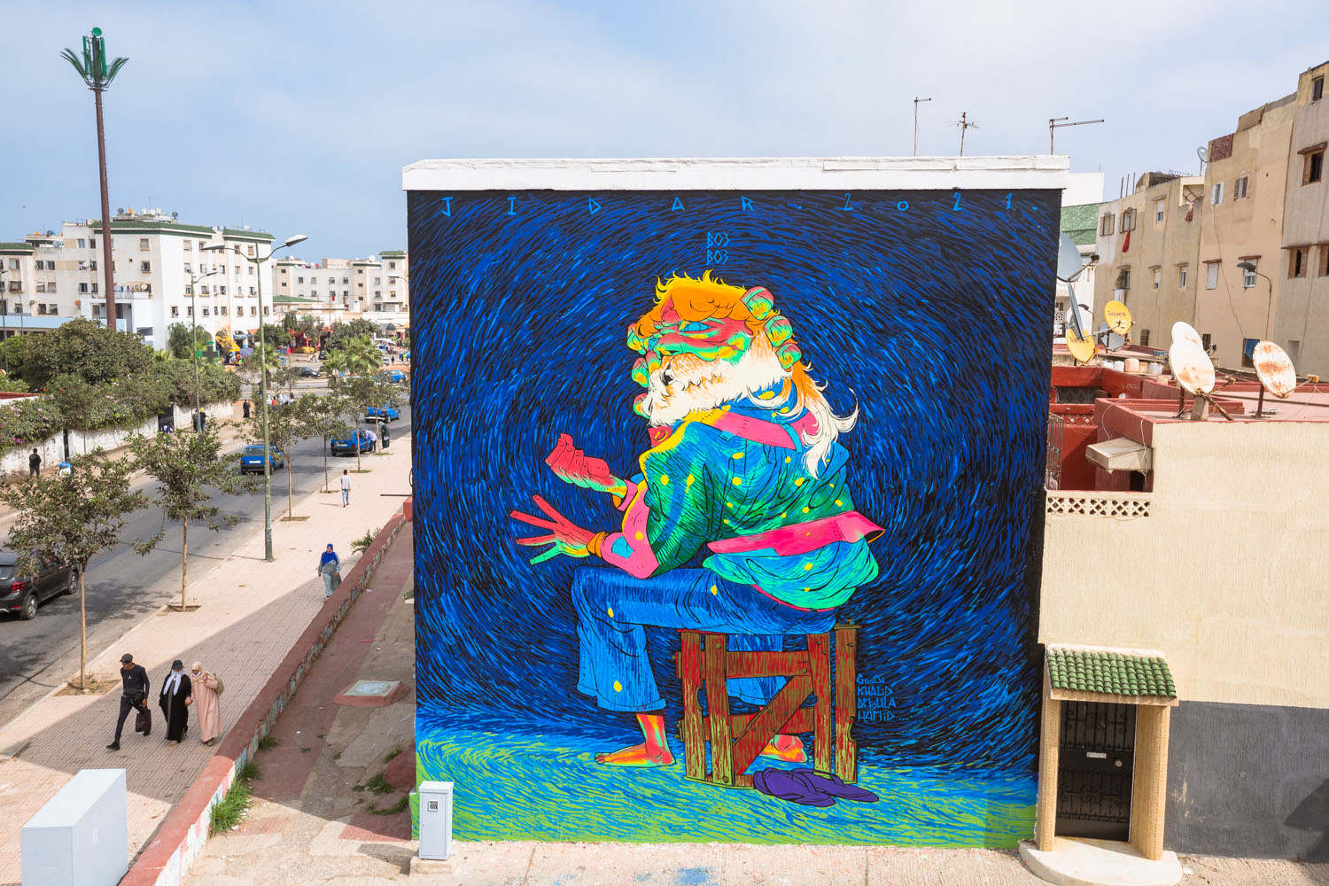 Passionné de dessin ainsi que de bande dessinée depuis le lycée, Omar Lhamzi (alias BO3BO3), bac en poche, met cap vers les Beaux-Arts de Tétouan d’où il sort diplômé en 2018. Ce concepteur de personnages, illustrateur, animateur 2D et muraliste, né il y a 25 ans à Agadir, puise la matière de ses œuvres dans les paysages et les scènes de vie, qu’il met en couleurs avec une finesse magnétique. Psychédélisme et surréalisme se confondent dans une parfaite harmonie. Omar touille sa palette jusqu’à l’impression de bigarrure et l’effet de disparate. Du rififi dans l’œuvre. Ses tonalités si violettes, parfois glauques, procurent à son œuvre une énergie hallucinogène, acidulée et inclassable.
