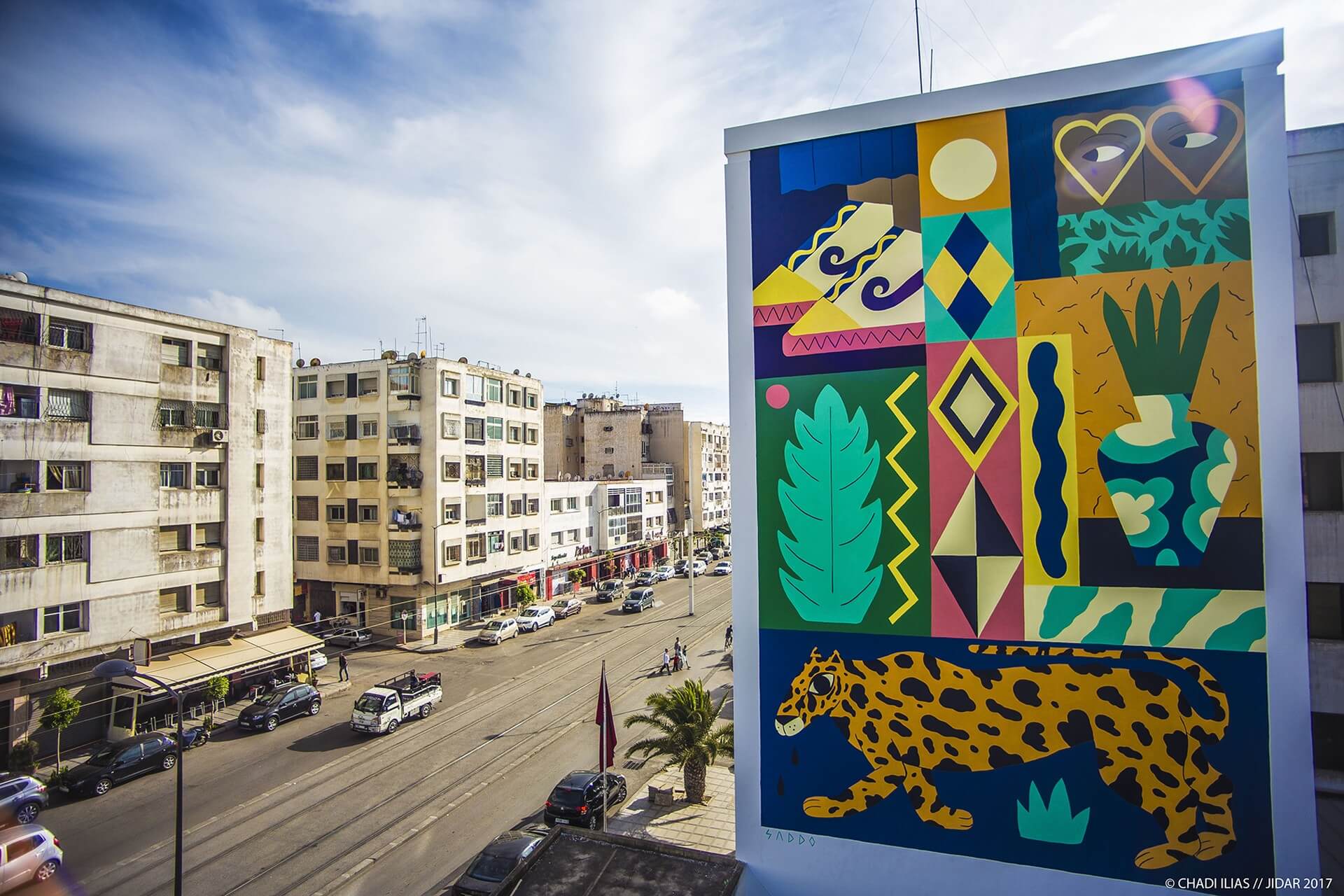 En Roumanie, son nom est intimement lié à l’histoire du street art. En effet, Saddo a fondé The Playground, le tout premier collectif du genre du pays. En dépit d’une formation classique en illustration et dessin à l’université d’art de Cluj Napoca, Saddo s’est très vite dirigé vers le street art et les oeuvres monumentales. Sa touche contemporaine l’a mené dès 2006 dans les galeries des quatre coins du globe, mais son style n’a cessé d’évoluer, entre surréalisme et pop art avec des influences de maîtres du XVe au XVIIe siècle tels que Giuseppe Arcimboldo, Hieronymus Bosch et Brueghel. Ses créatures tirées des mythes les plus anciens ou parfois sorties tout droit de ses rêves viendront orner l’avenue Sidi Mohamed Ben Abdellah, à l’occasion de cette édition de Jidar.